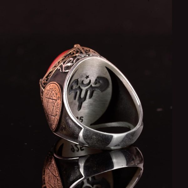 David Yıldızı Yüzük, Yapay Taş Yüzük, 925 Ayar Gümüş Süleyman Yüzüğü (Kırmızı Mercan Yapay)