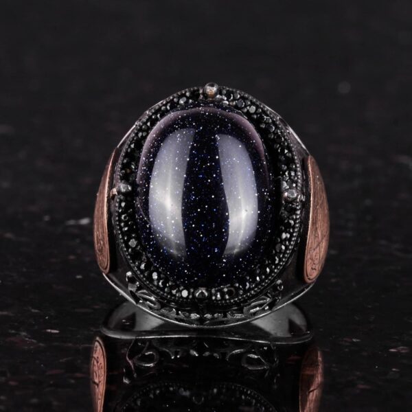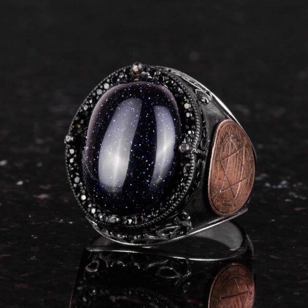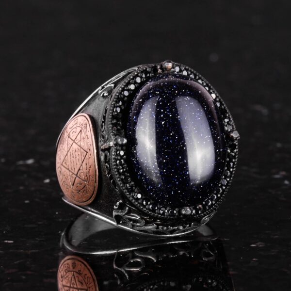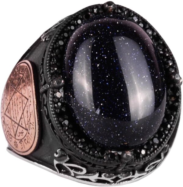 David Yıldızı Yüzük, Yapay Taş Yüzük, 925 Ayar Gümüş Süleyman Yüzüğü (Mavi Güneş Taşı Yapay Taş)