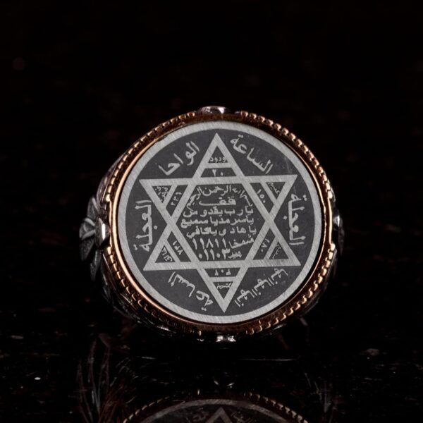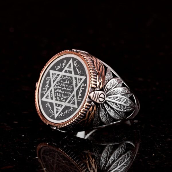 Davut Yıldızı, 925 ayar gümüş bir bant içinde güzelce yerleştirilmiştir ve zanaatkarlarımızın becerisi ile sanatı sergilemektedir. Her yüzük, her parça benzersiz ve en yüksek kalitede olması için titizlikle el yapımı olarak üretilmektedir.