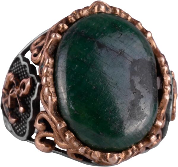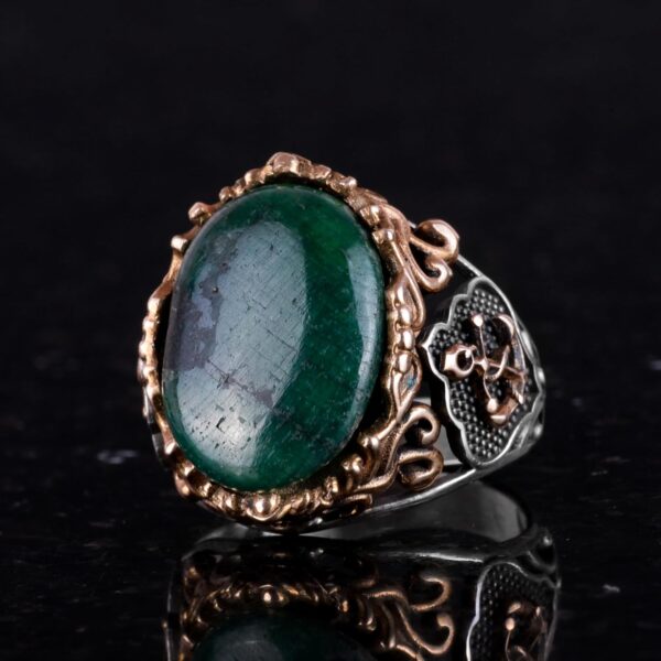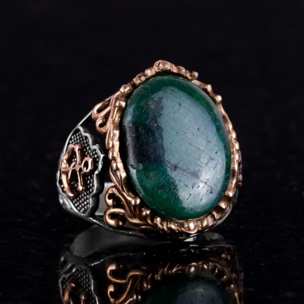 Denizci Anahtarı Gümüş Yüzük, Doğal Taş Yüzük, 925 Ayar Gümüş Yüzük, Cabochon Zümrüt