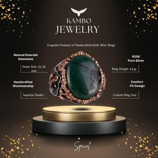 KAMBO Özel Koleksiyonu, 925K Katı Gümüş Erkek Yüzüklerimizin benzersiz zarafetini keşfetmeye davet ediyor. Koleksiyonumuzdaki her doğal taş, kendine has güzelliği ve getirdiği eşsiz enerji ile seçilmiştir. El yapımı yüzüklerimiz, lüks ve kişisel ifadenin özünü yansıtan mükemmel işçiliğin bir kanıtıdır. Yüzüğünüzü tam boyutunuza ve tercihinize göre özelleştirme seçeneği ile KAMBO, zarif takı dünyasına samimi bir yolculuk sunuyor. Doğa ve sanatın uyumunu, her biri kalite, memnuniyet ve zamansız zarafet vaadi taşıyan olağanüstü doğal taş yüzüklerimizle deneyimleyin. Yüzük Ağırlığı: 14gr Taş Boyutu: 15-20mm