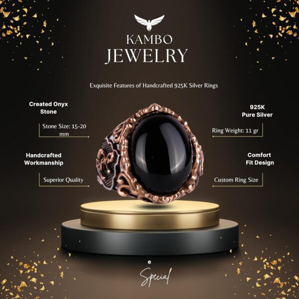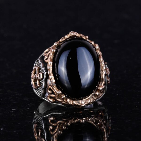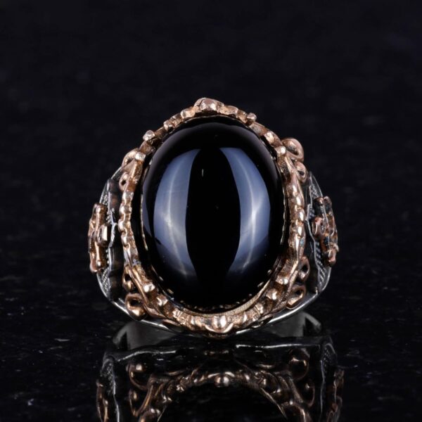Denizci Çapa Gümüş Yüzük, 925K Sterlin Gümüş Yüzük, Cabochon Oniks Üretilmiş Taş Yüzük, Farklı ve Çeşitli Koleksiyon