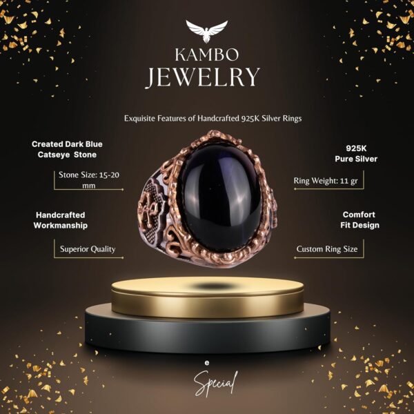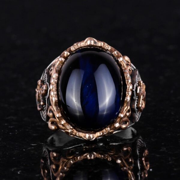Denizci Çapa Koyu Mavi Kedi Gözü Yapay Taş Yüzük, 925 Ayar Gümüş Yapay Taş Yüzükler – Çeşitli & Farklı Koleksiyon