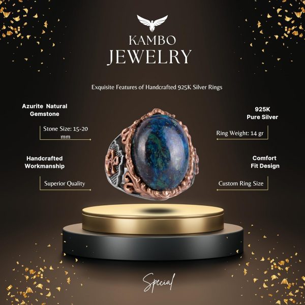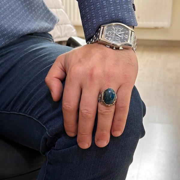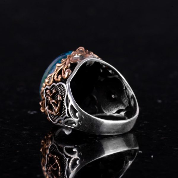 Denizci Çapa Yüzüğü, Doğal Azurit Taş Yüzüğü, 925 Ayar Sert Gümüş Erkek Yüzüğü, İçgörü ve Netlik Tasarımı