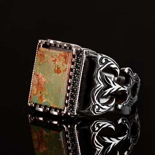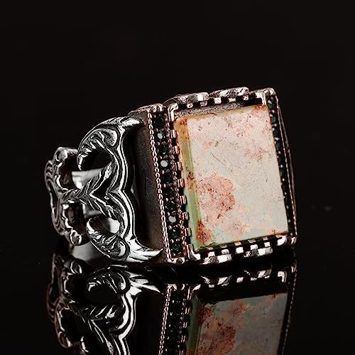 925 Ayar Gümüş Erkek Yüzüğü, Arizona Turkuaz Gümüş Yüzük, Arizona Turkuaz Yüzüğü, Eşsiz El Yapımı Gümüş Yüzük Ağırlık: 9.37gr Taş karatı: 3.70ct