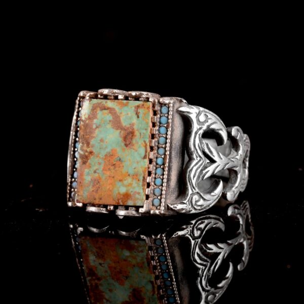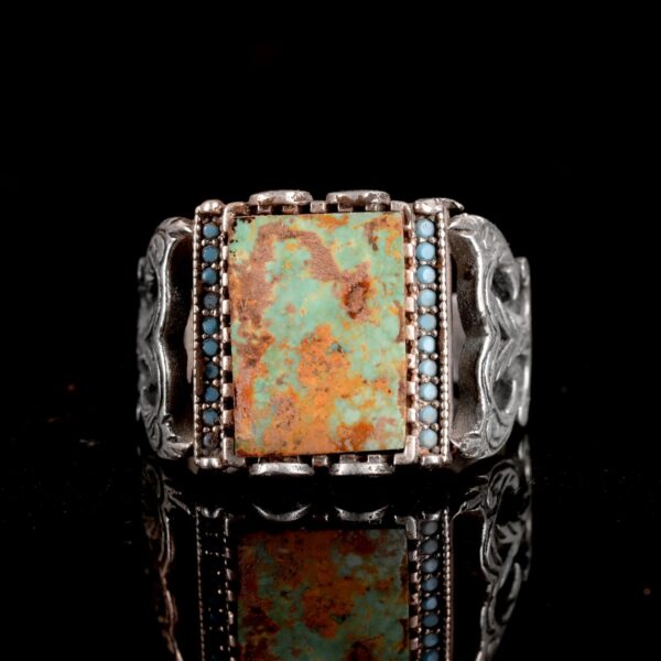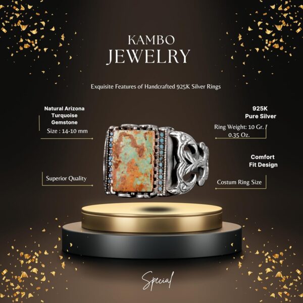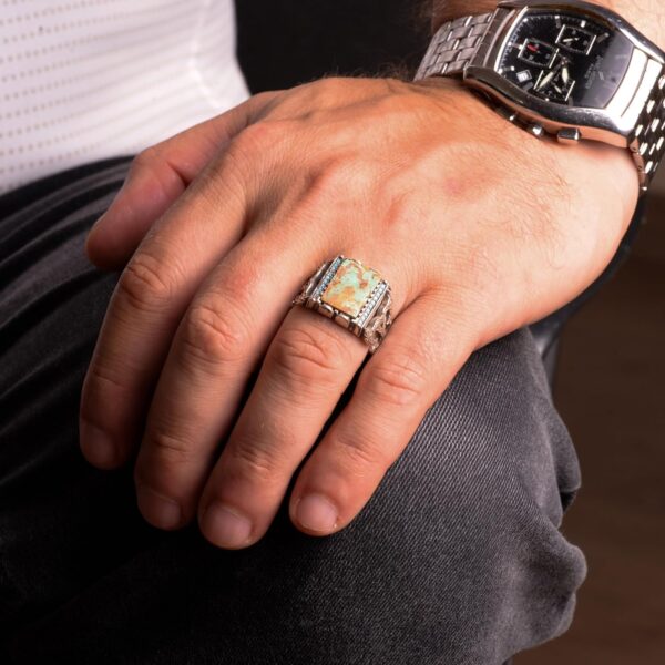 925 Ayar Gümüş Erkek Yüzük, Arizona Turkuaz Gümüş Yüzük, Arizona Turkuaz Yüzük, Eşsiz El Yapımı Gümüş Yüzük Ağırlık: 9.37gr Taş karatı: 3.70ct