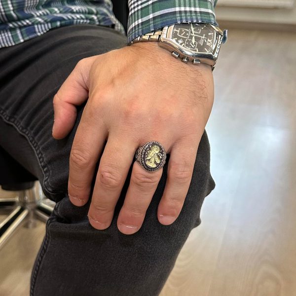 El Yapımı Oymalı Tasarım: Bu yüzük, usta zanaatkarlar tarafından titizlikle el yapımı olarak üretilmiştir ve detaylı bir oymalı tasarıma sahiptir. Bu karmaşık tasarım, miras, cesaret ve zengin kültürel mirası sembolize eder.