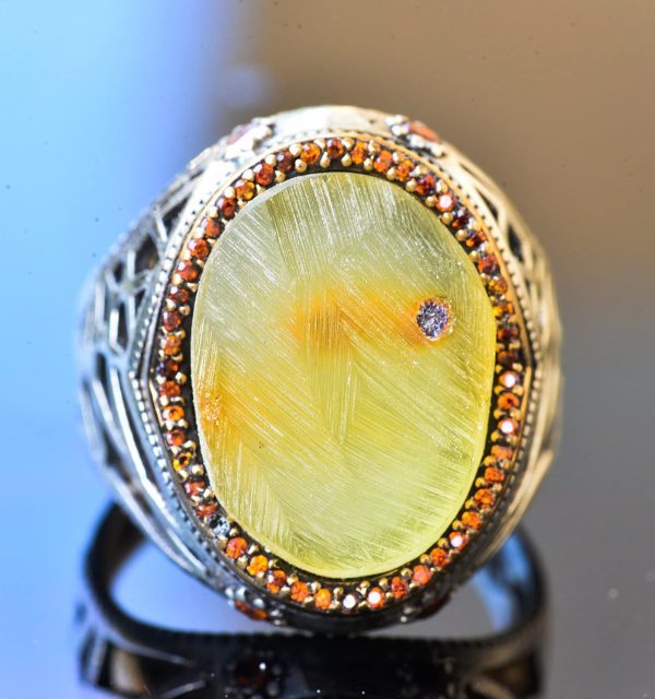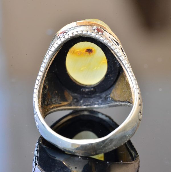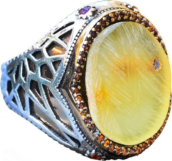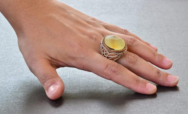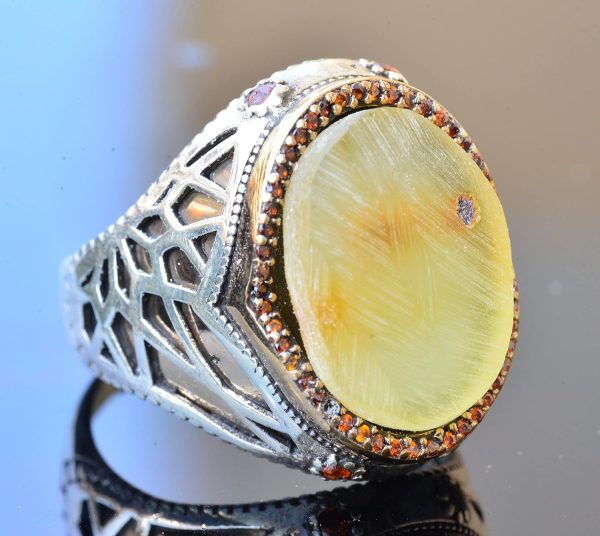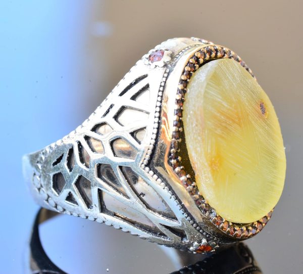 Doğal Amber Taş Yüzük – Gerçek Doğal Taş, Ham Taş, 925 Ayar Gümüş Erkek Yüzük