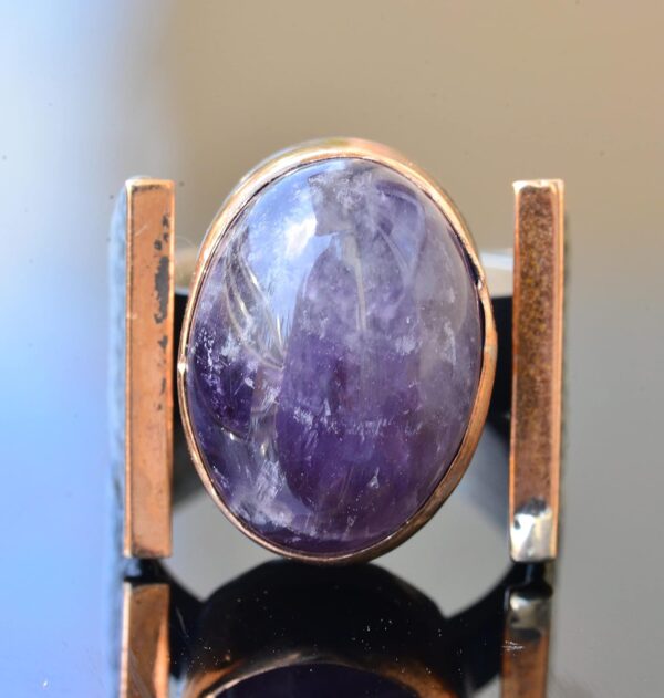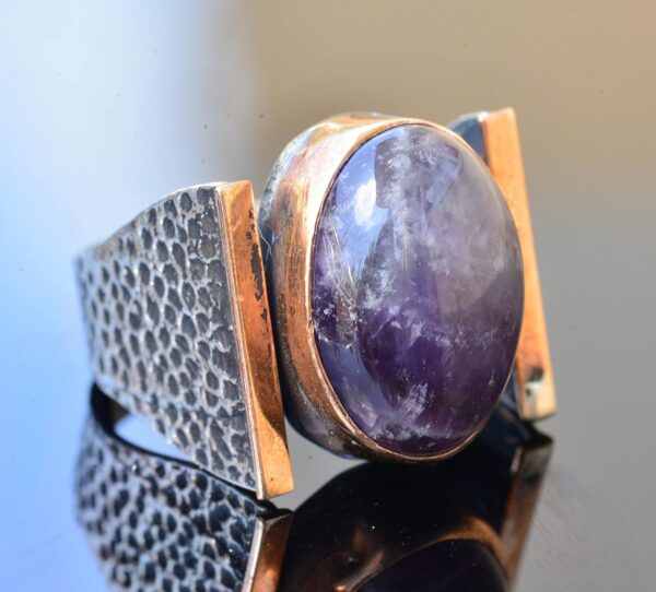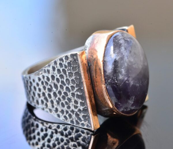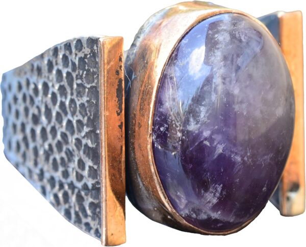 Doğal Ametist Taşlı Çekiç Tatu Saat Erkek Sterlin Gümüş Yüzük – 925 Ayar Gümüş