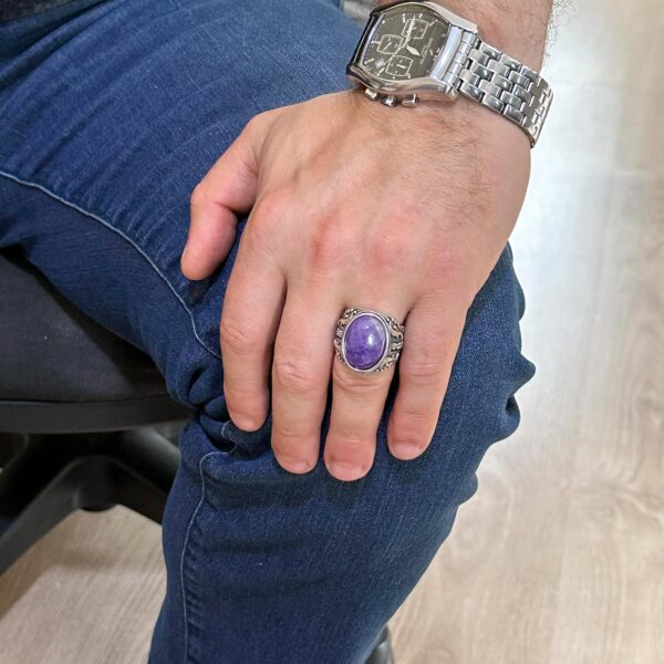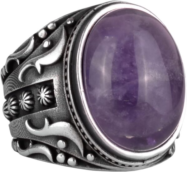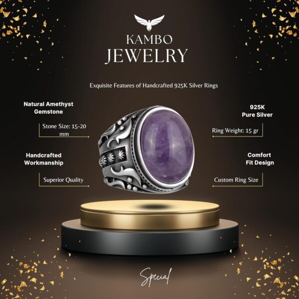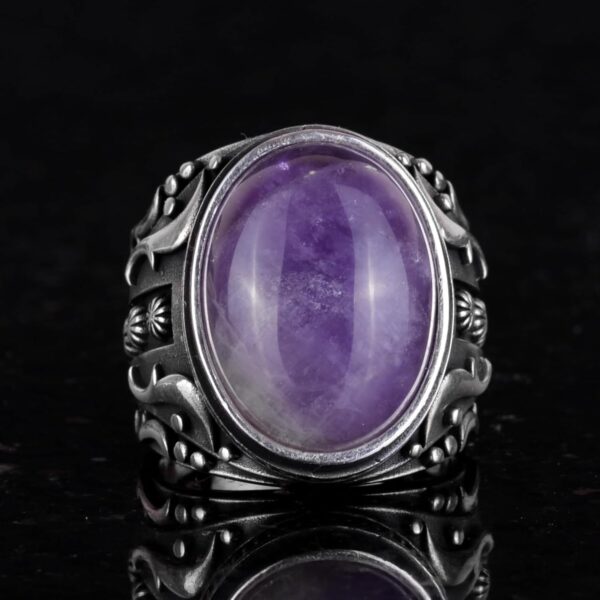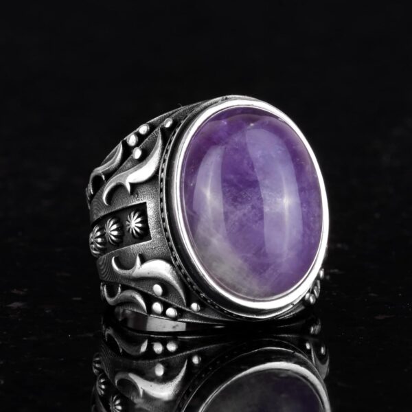 Doğal Ametist Taşlı Yüzük, 925K Katı Gümüş Erkek Yüzüğü, Tasarım Gümüş Erkek Yüzüğü