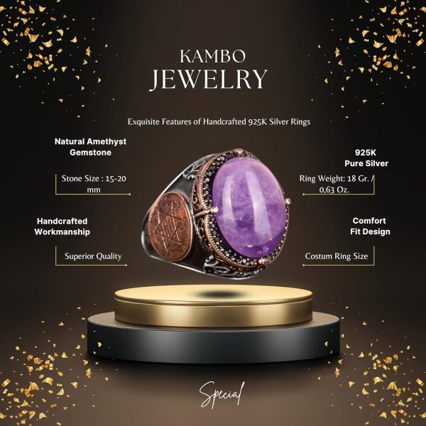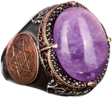 Doğal Ametist Taş Yüzük, Süleyman Mührü Yüzüğü – Spiritüel 925K Solid Sterling Gümüş Erkek Yüzüğü