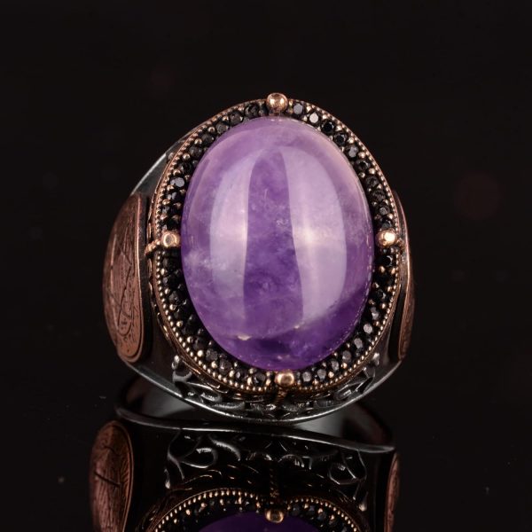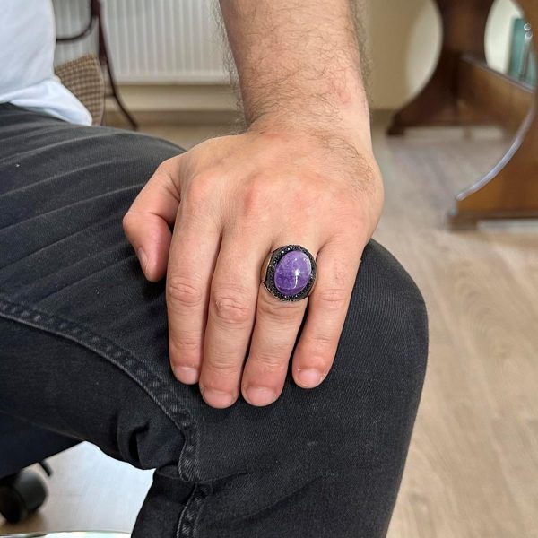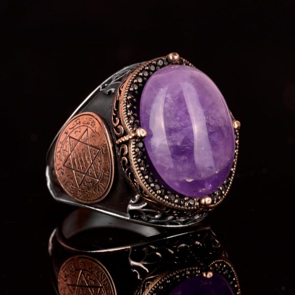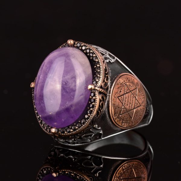 Doğal Ametist Taşlı Yüzük, Süleyman Mührü Yüzüğü – Spiritüel 925K Katı Gümüş Erkek Yüzüğü