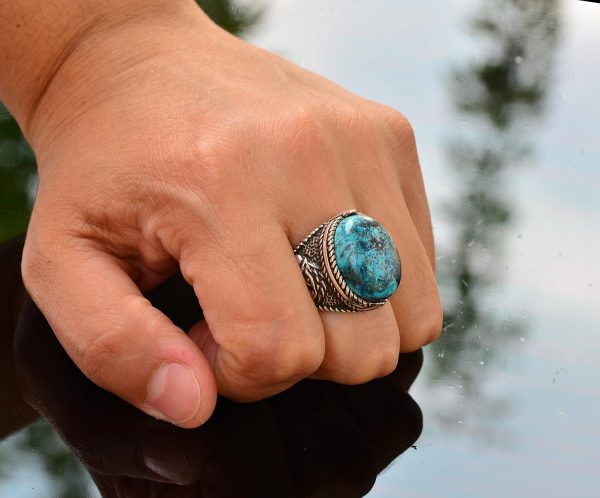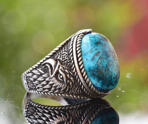 Doğal Arizona Turkuaz Taş Yüzük – 925 Ayar Gümüş Erkek Kartal Yüzüğü – Günlük Kullanım ve Özel Etkinlikler için İdeal (Stil-1)