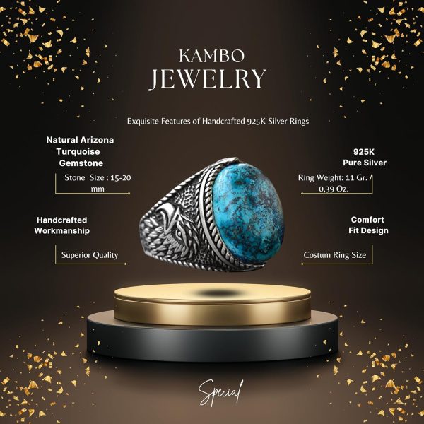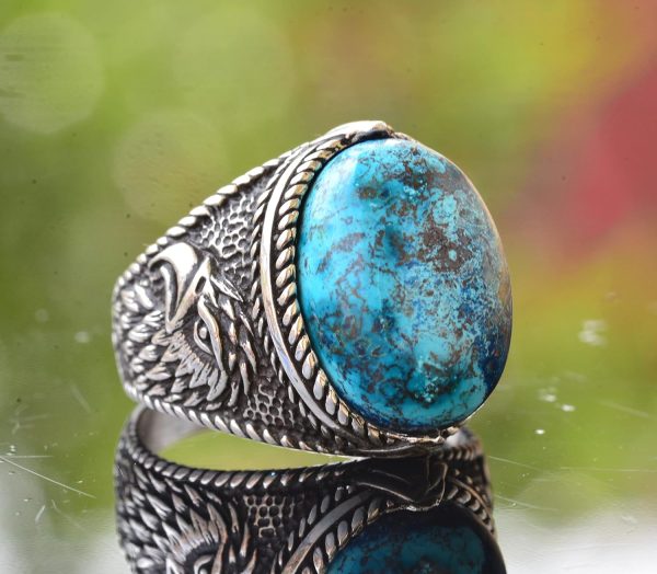 Doğal Arizona Turkuaz Taş Yüzük – 925 Ayar Gümüş Erkek Kartal Yüzüğü – Günlük Kullanım ve Özel Etkinlikler için İdeal (Stil-1)