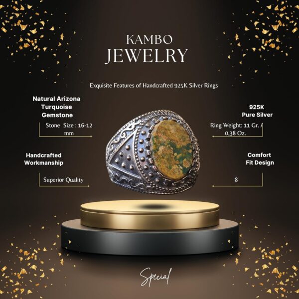 Doğal Arizona Turkuaz Taş Yüzük, Bizans Yüzüğü, Gümüş Yüzük