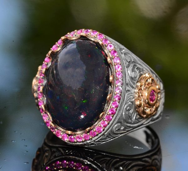 Doğal Avustralya Opal Taşlı Yüzük, 925 Ayar Gümüş Yüzük, Opal Yüzük
