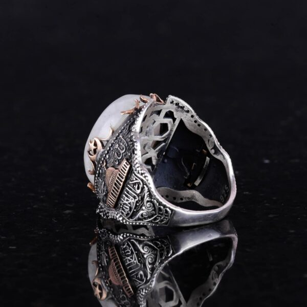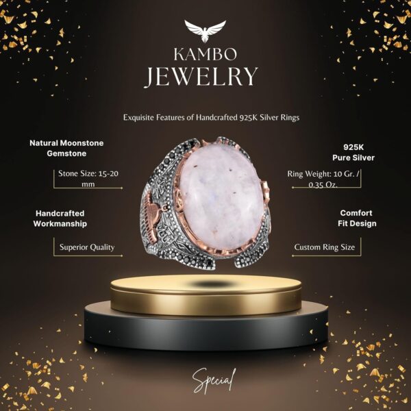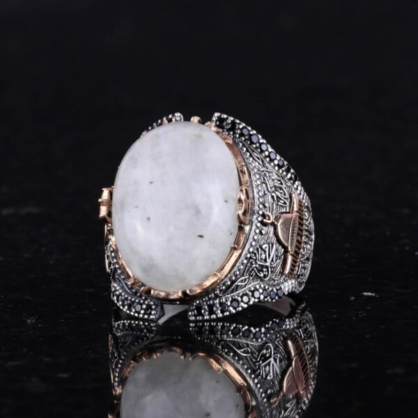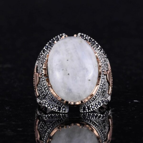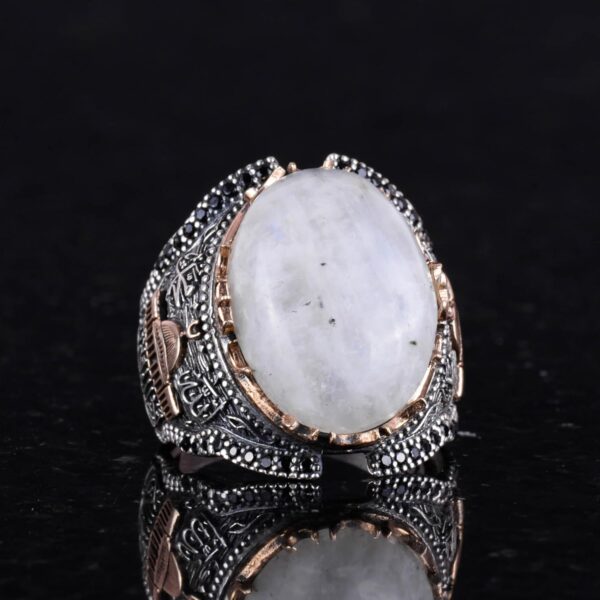 Doğal Ay Taşı Değerli Taş Yüzüğü, 925 Ayar Kaliteli Gümüş Erkek Yüzüğü, Ay Işığı Tasarımı