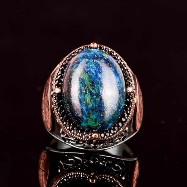 | Taş Tipi | Doğal Azurit Doğal Azurit, derin lacivert tonlarıyla dikkat çeken, görsel olarak güçlü bir etkiye sahip bir taştır. Tarih boyunca sezgi, içgörü ve dönüşüm gibi sembollerle anılmış; kendine özgü dokusuyla sanatsal ve karakterli tasarımlarda öne çıkar. |