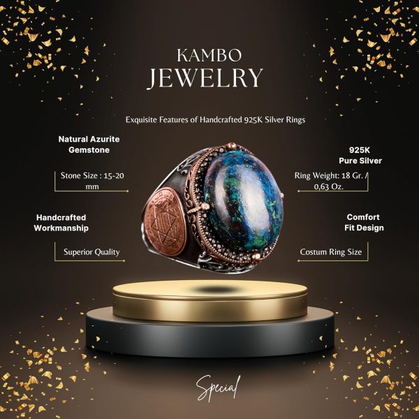 Mücevher koleksiyonunuzu gizemli Doğal Azurit Taş Yüzük ile zenginleştirin. Bu zarif parça, dayanıklılığı ve lüks görünümü sağlamak için titizlikle 925K saf sterling gümüşten üretilmiştir. Yüzüğün merkezinde, derin mavi rengi ve mistik özellikleri ile ünlü gerçek bir Azurit taşı bulunmaktadır. Azurit, özellikle Yay burcunda doğanlar için yararlıdır; sezgiyi, ruhsal farkındalığı ve netliği artırır. Yüzüğün tasarımında Davud Yıldızı da yer almakta, bu da ona ruhsal ve kültürel bir anlam katmaktadır. Özel günler için mükemmel olan bu yüzük, stil ve anlamı bir araya getirerek erkekler için düşünceli ve benzersiz bir hediye haline geliyor.