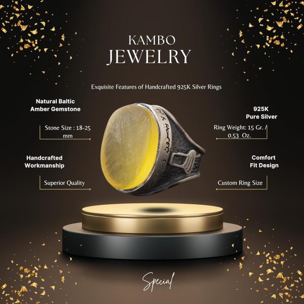 Doğal Baltık Amber Taşı 925 Ayar Gümüş Erkek Yüzük – Gerçek Ham Taş