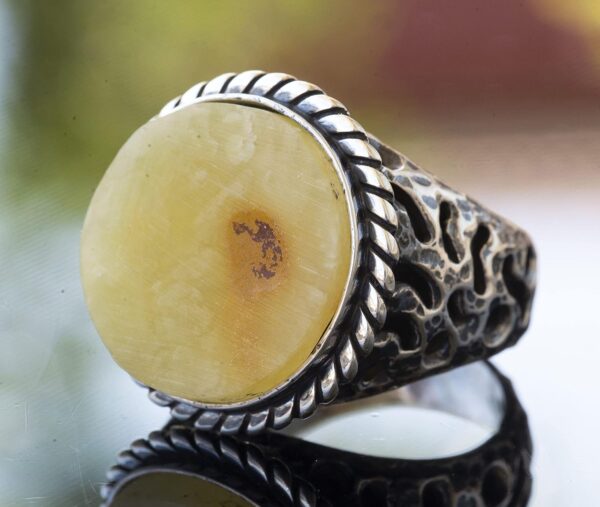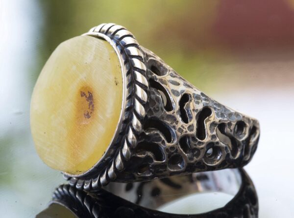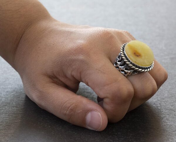 Doğal Baltık Kehribar Taşlı Yüzük Ham Taş Gerçek Doğal Taş Organik Kehribar 925 Ayar Gümüş Erkek Yüzüğü Leo Doğum Taşı Astrolojik Takı El Yapımı Takı Erkek Yüzük Hediyesi