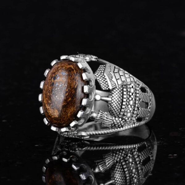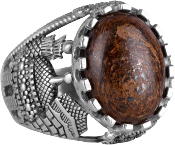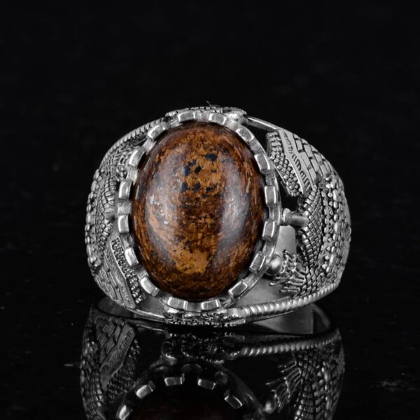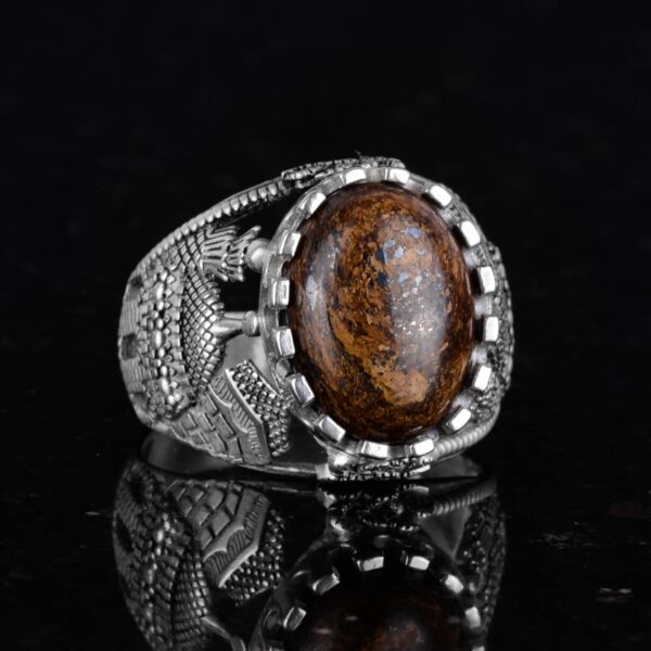 Doğal Bronzit Taş Yüzük, 925 Ayar Katı Gümüş Erkek Yüzüğü