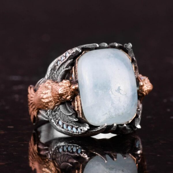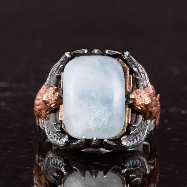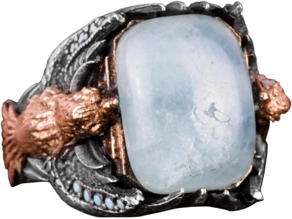 KAMBO Erkekler için Doğal Cabochon Aquamarin Yüzük