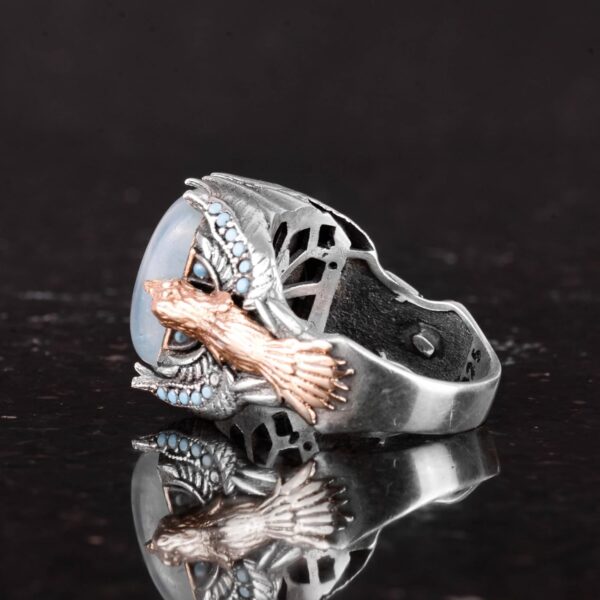 Detaylara özen gösterilerek tasarlanan bu yüzük, güç, özgürlük ve vizyonu simgeleyen karmaşık bir kartal tasarımına sahiptir. 925 ayar gümüş montajı, ona bir zarafet katmakta ve her türlü etkinlik için mükemmel bir aksesuar haline getirmektedir.