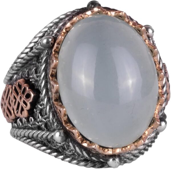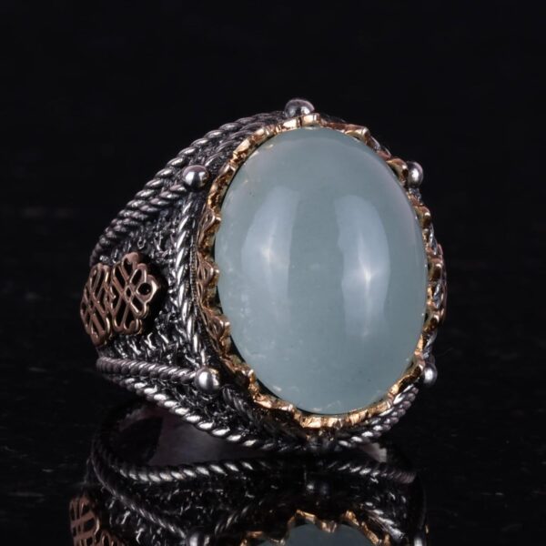 Doğal Cabochon Akuamarin Taş Yüzük, Huzurlu 925K Katı Gümüş Erkek Yüzüğü, Sakin Deniz Tasarımı