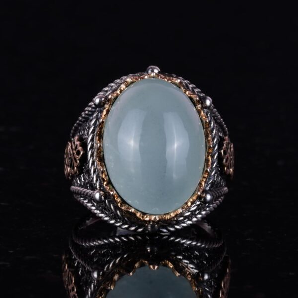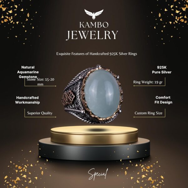 Okyanusun sakin özünü KAMBO El Yapımı Akvamarin Cabochon Taş Yüzük ile kucaklayın. Zarif 925K saf gümüş üzerine yerleştirilmiş bu yüzük, denizin huzurlu derinlikleriyle bağlantısı nedeniyle değer verilen Cabochon Akvamarin taşını içermektedir. Sükunet, netlik ve su üzerinde seyahat ederken koruma sağladığı bilinen Akvamarin, yaşamın çalkantılı yolculuğunda bir huzur ışığıdır. Her parça, ustalığımızın bir kanıtıdır ve KAMBO Cabochon Akvamarin Yüzüğünü sadece bir aksesuar değil, aynı zamanda huzur ve cesaretin bir sembolü haline getirir.