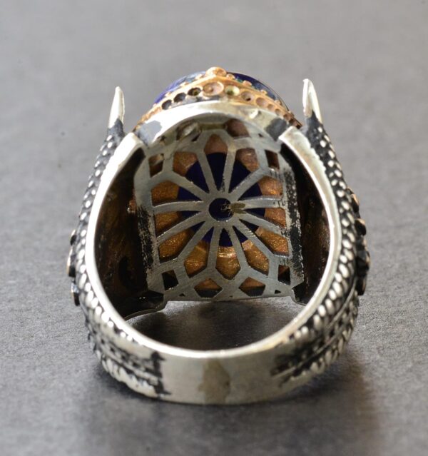 Doğal Cabochon Safir Taşlı Erkek Yüzüğü, 925 Ayar Gümüş Kartal Pençesi Tasarımı