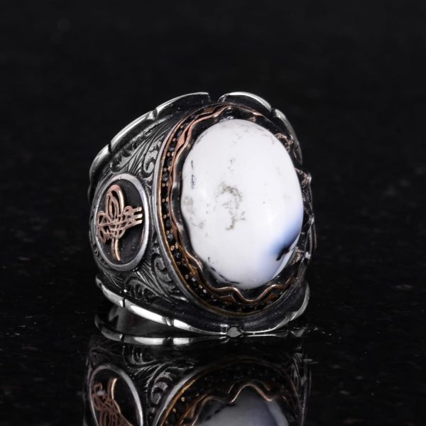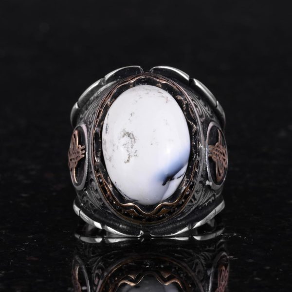 Doğal Dendrit Agat Taş Yüzüğü, Osmanlı Tuğra Yüzüğü, 925 Ayar Sert Gümüş Yüzük