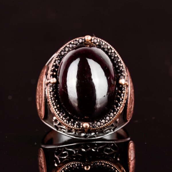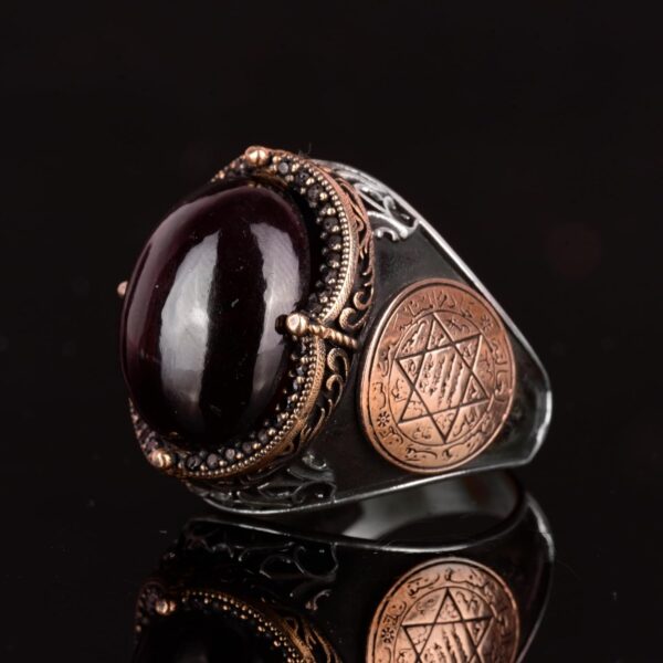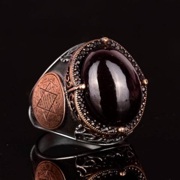 Doğal Garnet Taşlı Yüzük, Davut Yıldızı Yüzüğü – 925 Ayar Sert Gümüş Erkek Yüzüğü
