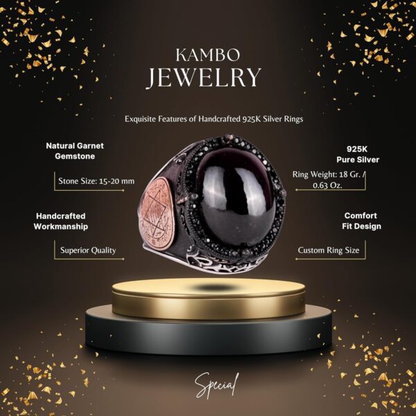 Doğal Garnet Taş Yüzük, Davut Yıldızı Yüzük – 925K Katı Gümüş Erkek Yüzüğü – Tutku ve Enerji Tasarımı