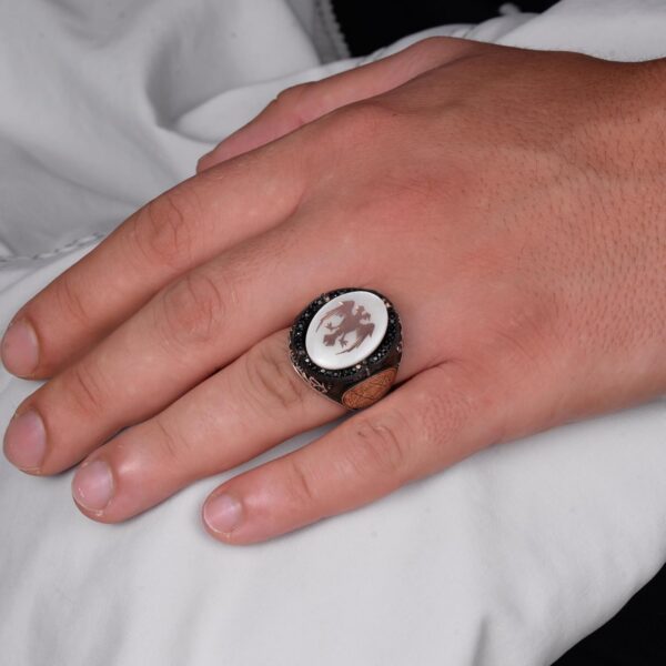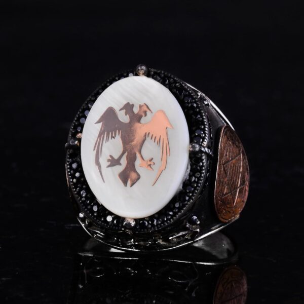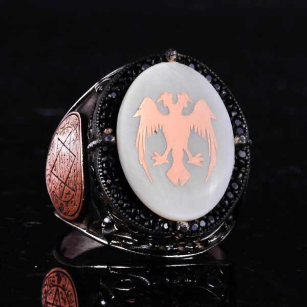 Tasarım, birlik, güç ve ruhsal bağlantının güçlü sembolleri olan çift başlı kartal ve Davut Yıldızı ile süslenmiştir. Bu yüzük sadece bir stil ifadesi değil, aynı zamanda derin kültürel ve ruhsal mirası yansıtır.