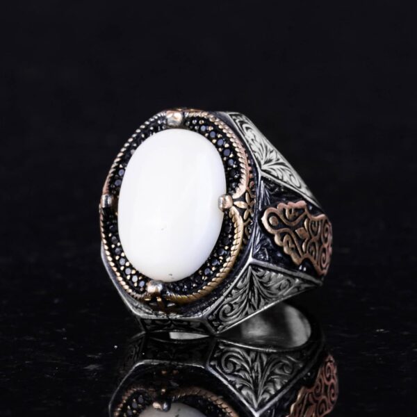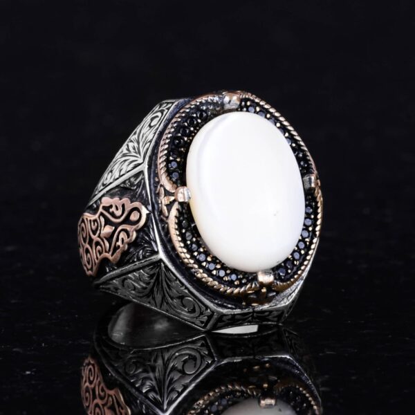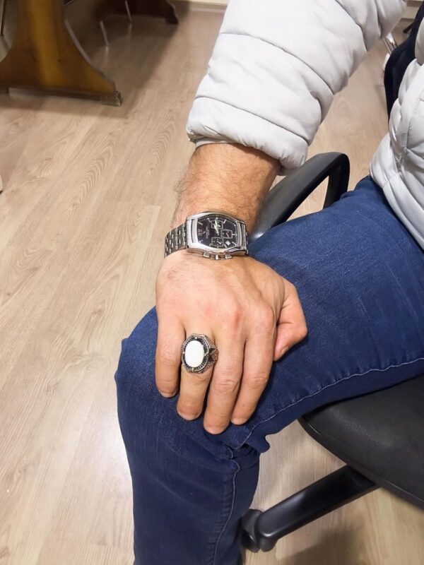 Doğal Sedef Taşlı Yüzük – 925 Ayar Gümüş Yüzük Erkekler İçin