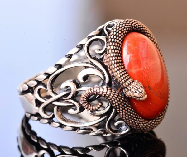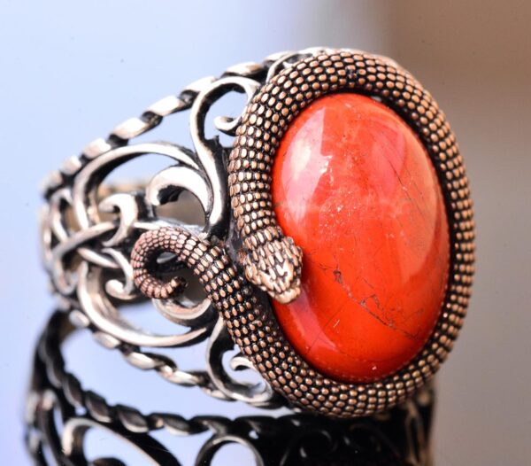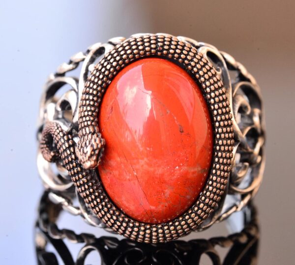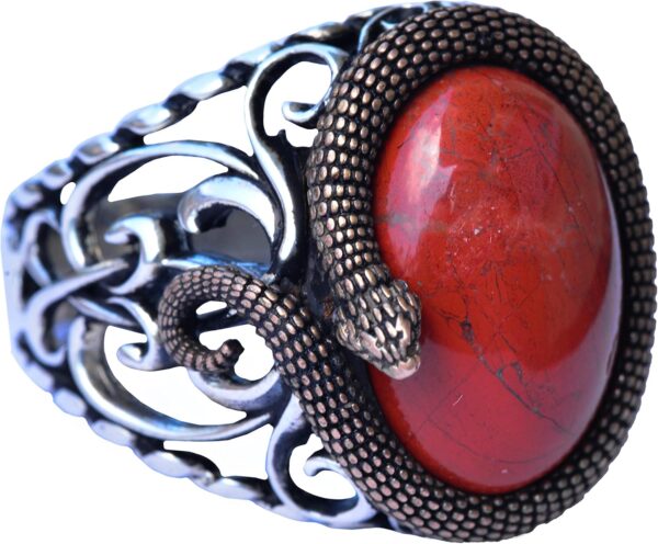 Doğal Kan Taşı Taşlı Yılan Yüzük, El Yapımı Yüzük, Ayar Gümüş Erkek Yüzüğü, Hediye için, Gümüş Aksesuar, Kahverengi
