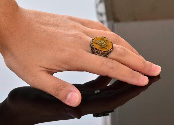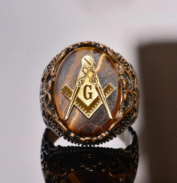 Doğal Kaplan Göz Taşı Yüzük – El Yapımı 925 Ayar Gümüş Masonic Tasarım Erkekler için