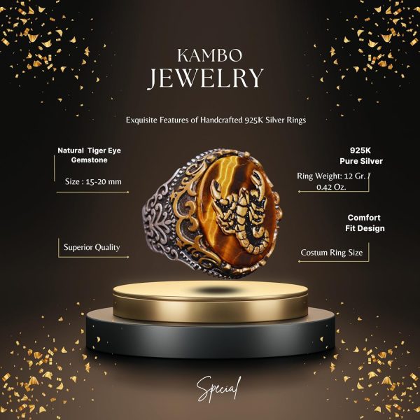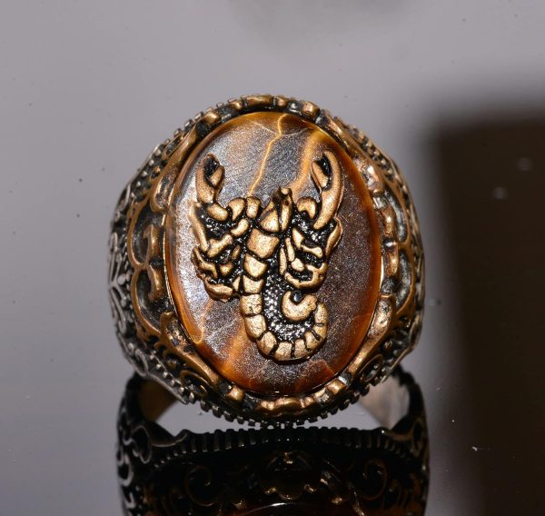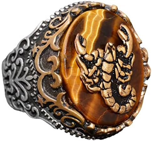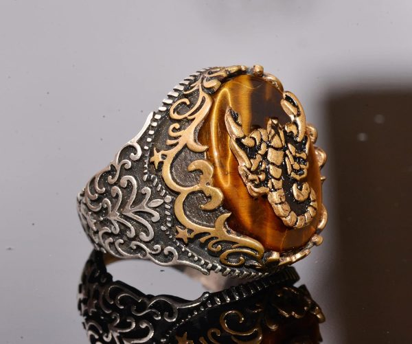 Doğal Kaplan Gözü Taşı Yüzük – 925 Ayar Gümüş Yüzük – Erkekler İçin Yüzük (Akrep)