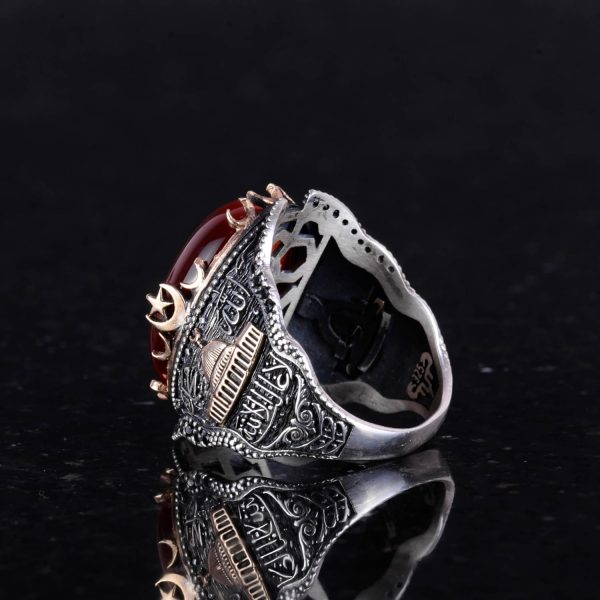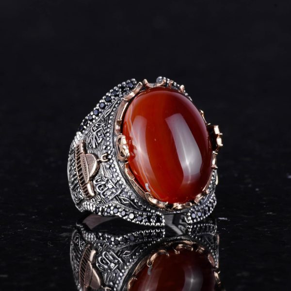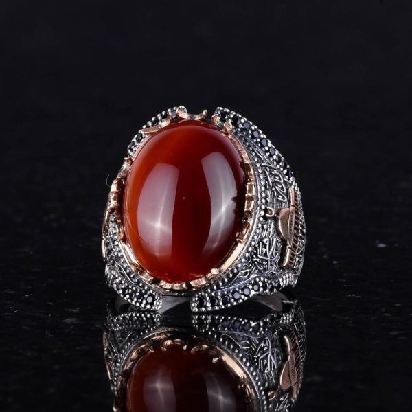 Doğal Kırmızı Akik Taş Yüzük, 925 Ayar Gümüş Yüzük Erkekler İçin