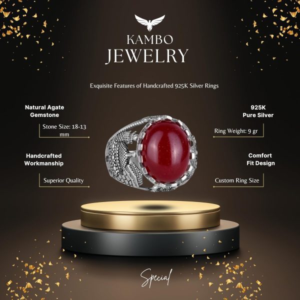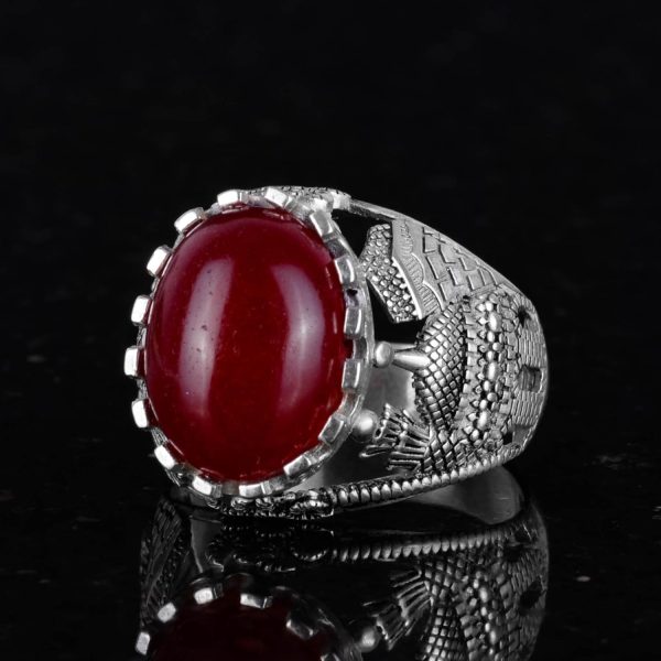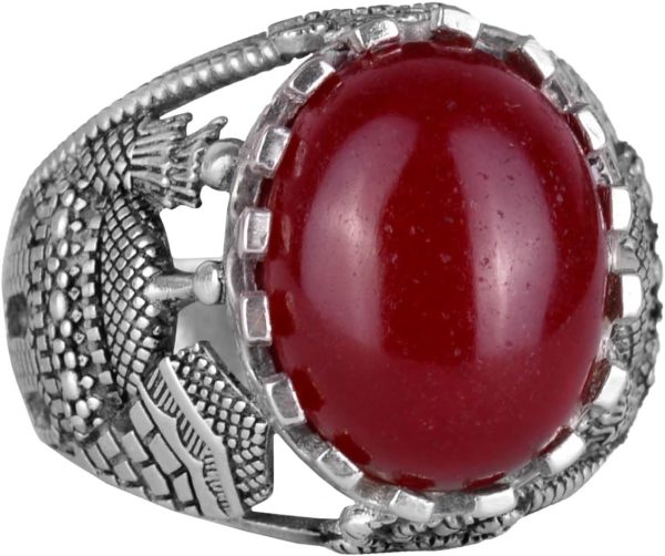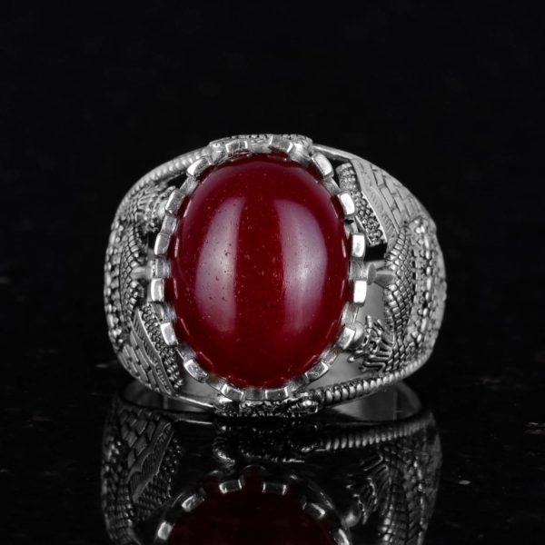 Doğal Kırmızı Akik Taş Yüzük, 925 Ayar Sert Gümüş Yüzük Erkekler İçin
