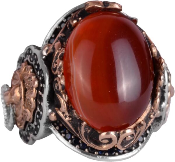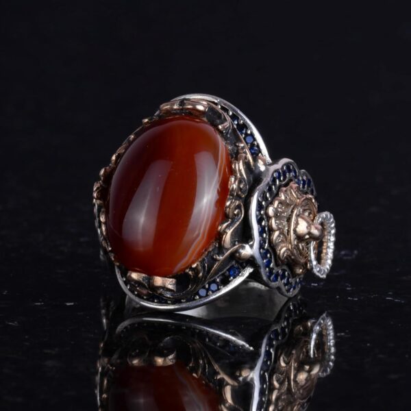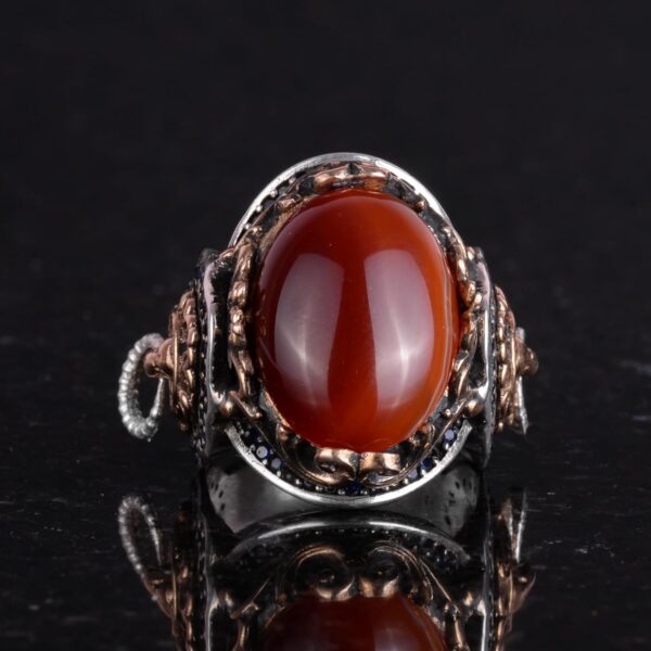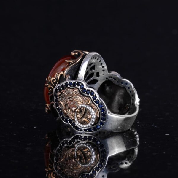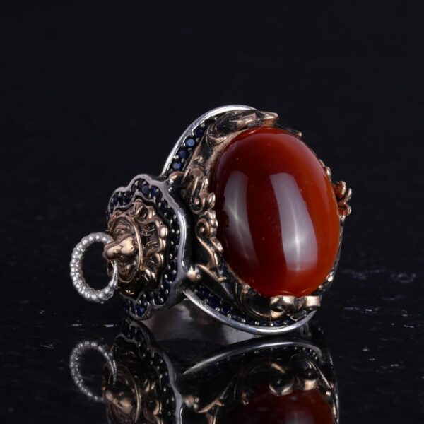 Doğal Kırmızı Akik Taş Yüzük, Aslan Başı Erkek Yüzüğü – 925 Ayar Gümüş Yüzük Erkekler İçin
