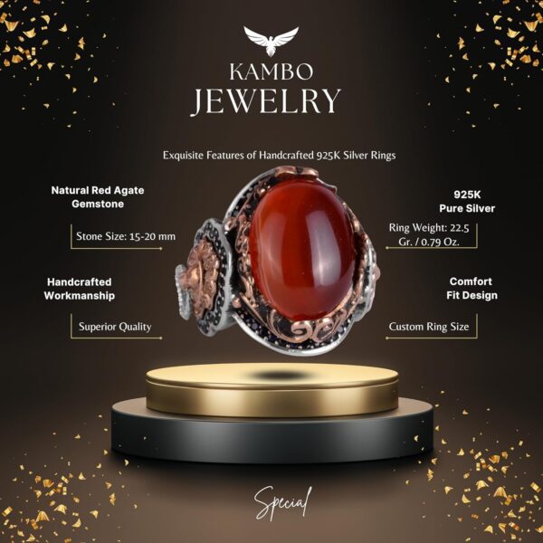 KAMBO Özel Koleksiyonu, doğal taşların zengin çeşitliliği ile zenginleştirilmiş 925K Solid Sterling Gümüş Erkek Yüzüklerimizin eşsiz zarafetini keşfetmeye davet ediyor. Koleksiyonumuzdaki her bir taş, kendine özgü güzelliği ve getirdiği benzersiz enerji ile seçilmiştir. El yapımı yüzüklerimiz, lüksün ve kişisel ifadenin özünü yansıtan ince işçiliğin bir kanıtıdır. Yüzüğünüzü tam boyutunuza ve tercihinize göre özelleştirme seçeneği ile KAMBO, zarif mücevherler dünyasında samimi bir yolculuk sunuyor. Her biri kalite, memnuniyet ve zamansız zarafet vaadi taşıyan olağanüstü taş yüzüklerimizle doğanın ve sanatın uyumunu deneyimleyin. Yüzük Ağırlığı: 22gr Taş Boyutu: 20-15mm
