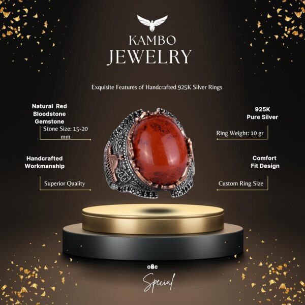 KAMBO Özel Koleksiyonu, 925K Katı Gümüş Erkek Yüzüklerimizin eşsiz zarafetini keşfetmeye davet ediyor. Koleksiyonumuzdaki her doğal taş, kendine özgü güzelliği ve getirdiği eşsiz enerji ile seçilmiştir. El yapımı yüzüklerimiz, zarif işçiliğin bir göstergesi olup, lüksün ve kişisel ifadenin özünü yansıtır. KAMBO, yüzüğünüzü tam ölçünüze ve tercihinize göre özelleştirme seçeneği sunarak, sizi ince mücevher dünyasına kısa bir yolculuğa çıkarır. Doğa ve sanatı bir araya getiren olağanüstü taş yüzüklerimizle kalite, memnuniyet ve zamansız zarafet vaadini yaşayın. Yüzük Ağırlığı: 10gr Taş Boyutu: 20-15mm