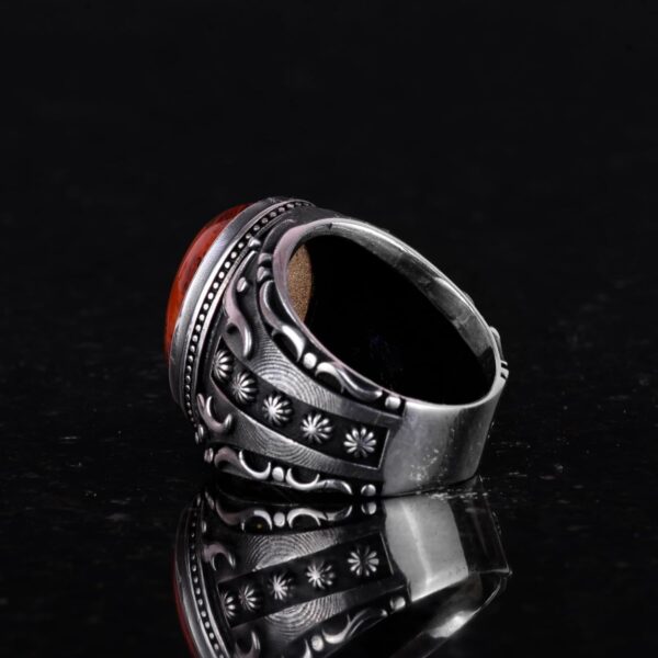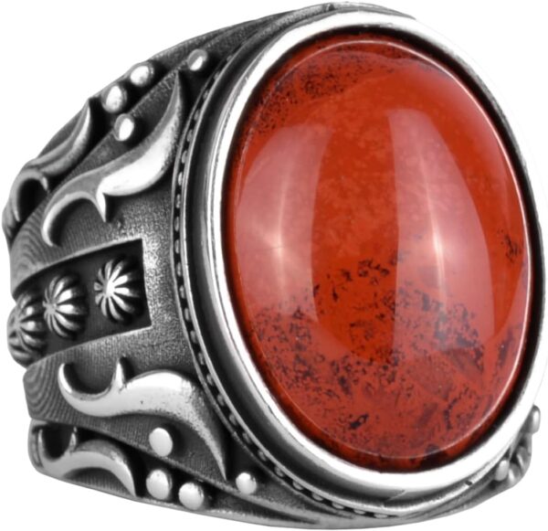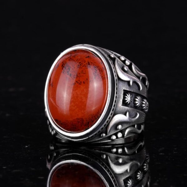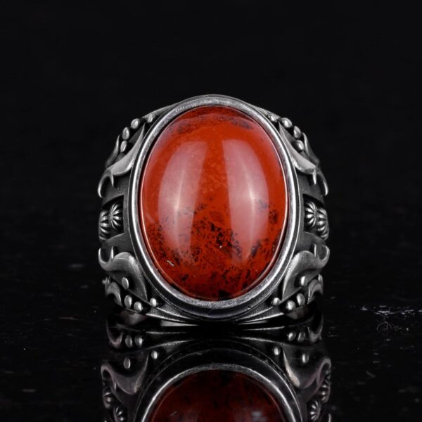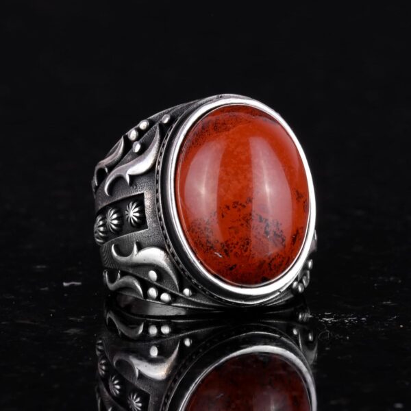 Doğal Kırmızı Kan Taşı Yüzük, 925 Ayar Sert Gümüş Yüzük, Tasarım Gümüş Erkek Yüzüğü
