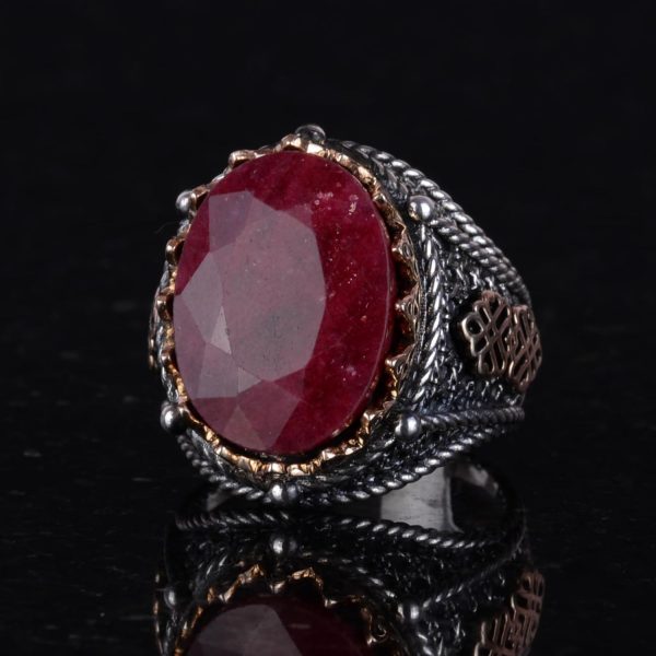 Doğal Kırmızı Yakut Yüzük – 925 Ayar Gümüş, Şık Erkek Yüzüğü