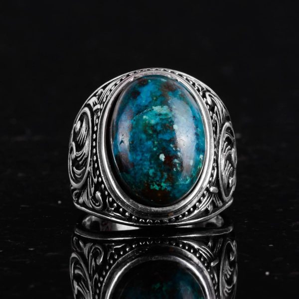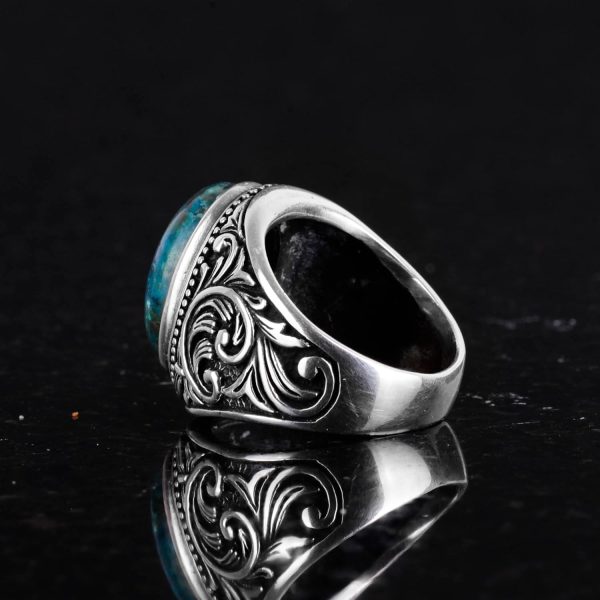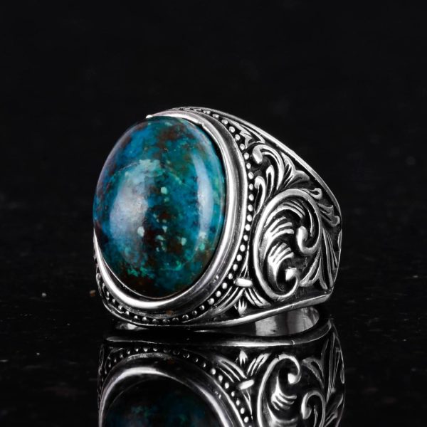 Doğal Kriyoskolit Taşlı Yüzük, 925 Ayar Sert Gümüş Erkek Yüzüğü