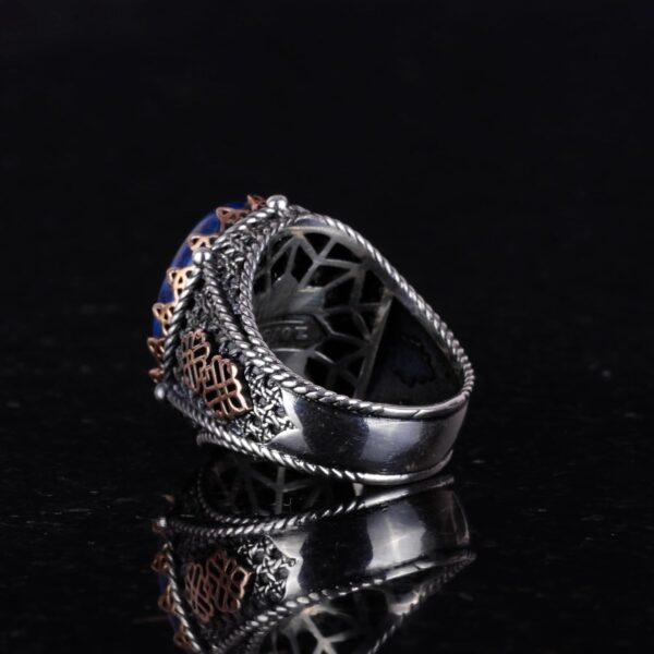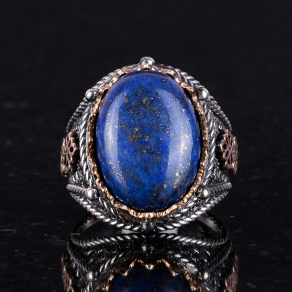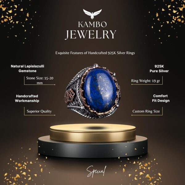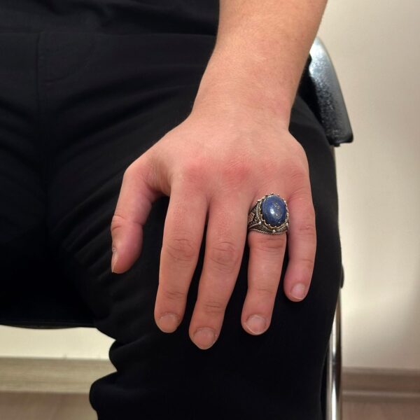 Doğal Lapis Lazuli Taş Yüzük, 925 Ayar Gümüş Erkek Yüzük, Bilgelik ve Gerçek Tasarımı