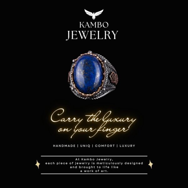 Antik bilgelik dünyasına adım atın, el yapımı Lapis Lazuli Doğal Taş Yüzüğümüz ile. Parlak 925K saf gümüş üzerine yerleştirilen bu yüzük, Lapis Lazuli’nin büyüleyici mavi tonunu sergileyerek, gecenin karanlığında parlayan yıldızları andıran altın pirit lekeleri ile süslenmiştir. Yüzyıllardır kraliyet, bilgelik ve gerçekliğin sembolü olarak kutlanan Lapis Lazuli, kişisel gelişimi ve aydınlanmayı teşvik eder. Her bir yüzük, anlam ve tarih taşıyan parçalar yaratma konusundaki kararlılığımızın bir kanıtıdır; bu nedenle KAMBO Lapis Lazuli Yüzüğü sadece bir takı değil, aynı zamanda bilgi ve kendini keşif konusunda bir ışık kaynağıdır.
