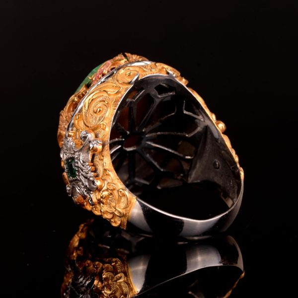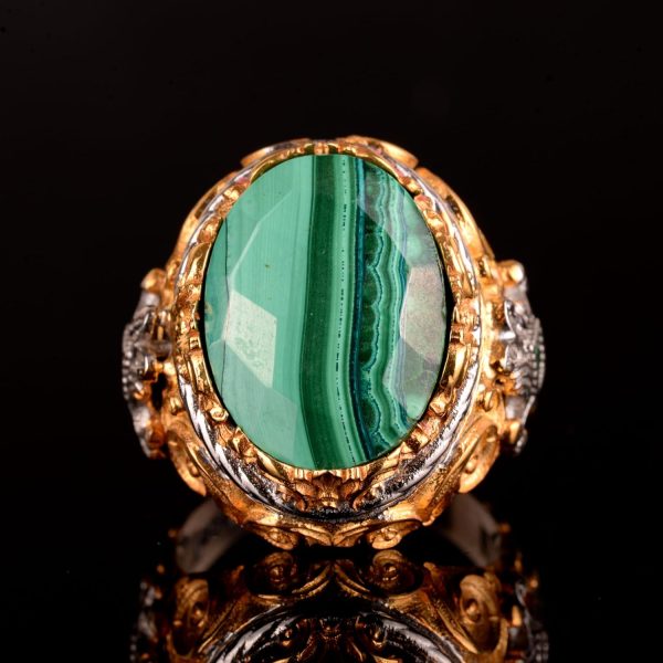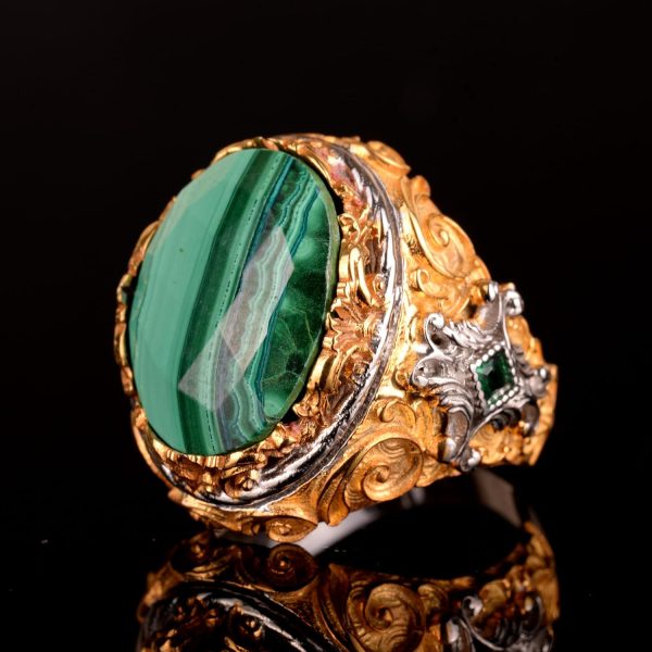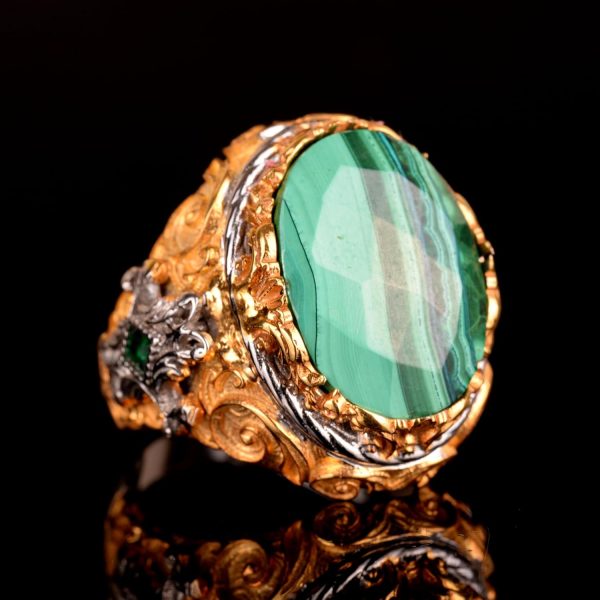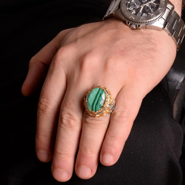 Gerçek Doğal Malakit Taşlı Yüzük, Vintage Yüzük, 925 Ayar Gümüş Erkek Yüzüğü Ağırlık: 18.88 gr